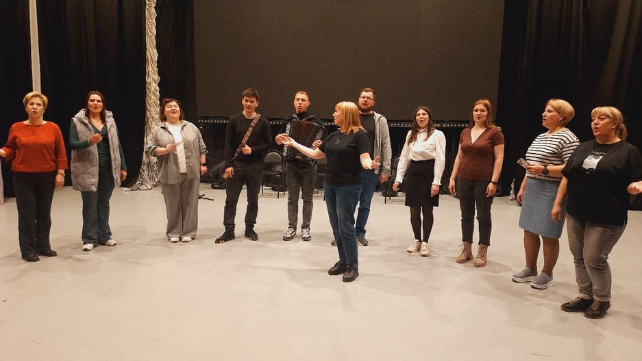 Участники попробовали себя в роли настоящих исполнителей: вместе с ансамблем «Заряница» они пели, водили хороводы и осваивали элементы сценической подачи.